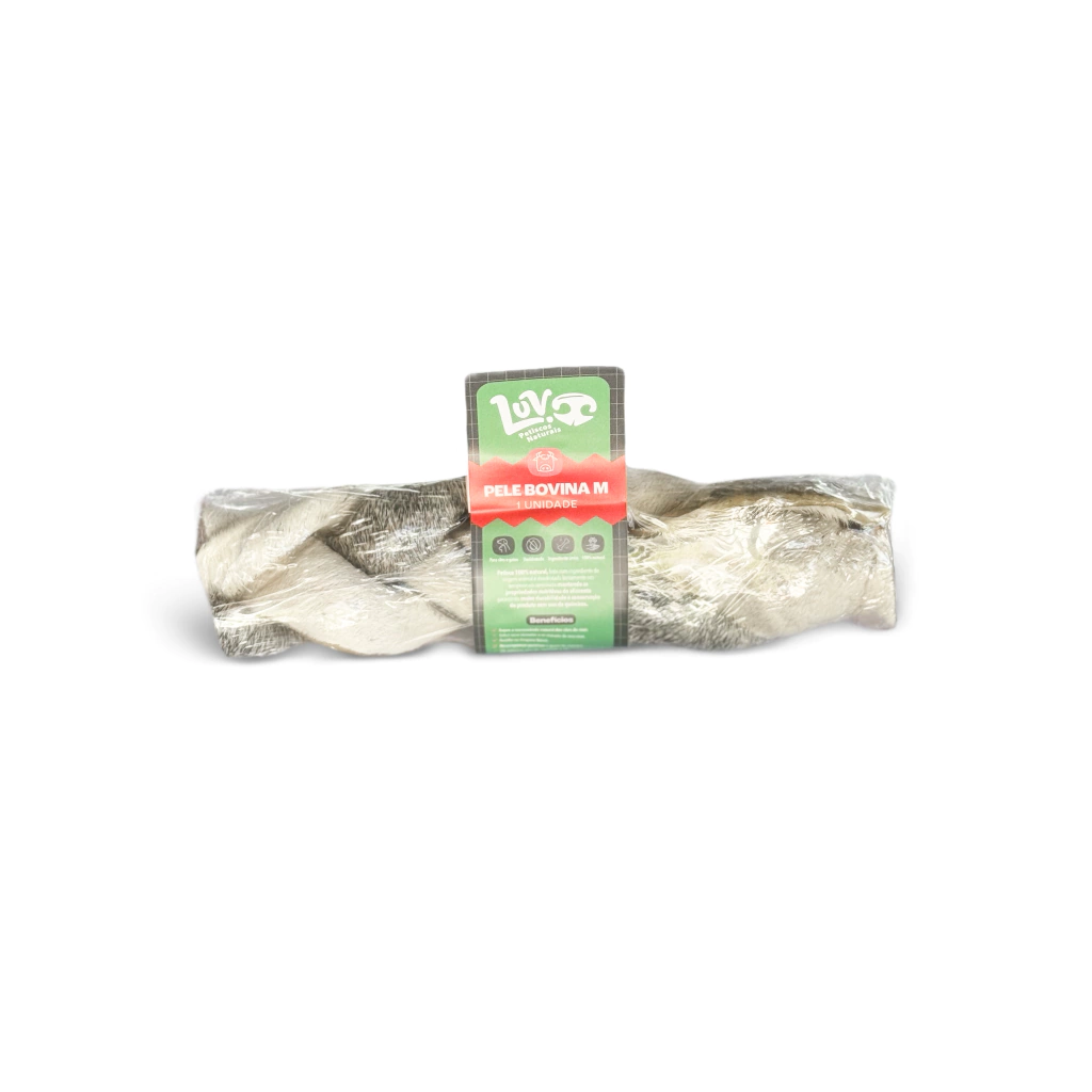 Trançado com 3 tiras de pele de boi, um dos mastigáveis mais resistentes da linha.