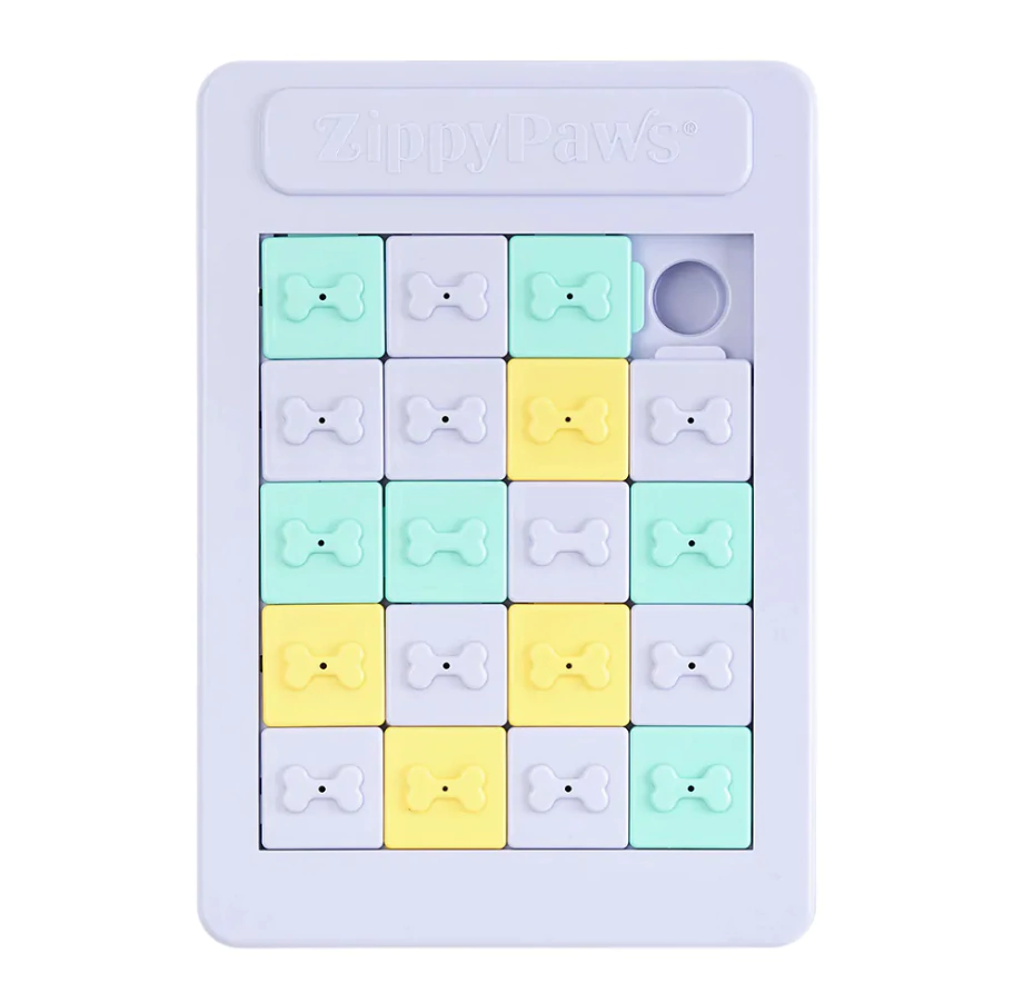 Challenge your pup to some rewarding brain-teasing fun with the SmartyPaws Puzzler Panel Sliders dog toy! The all-new Panel Sliders interactive toy from ZippyPaws teaches them problem solving skills for a fun and engaging way to receive treats or kibble!